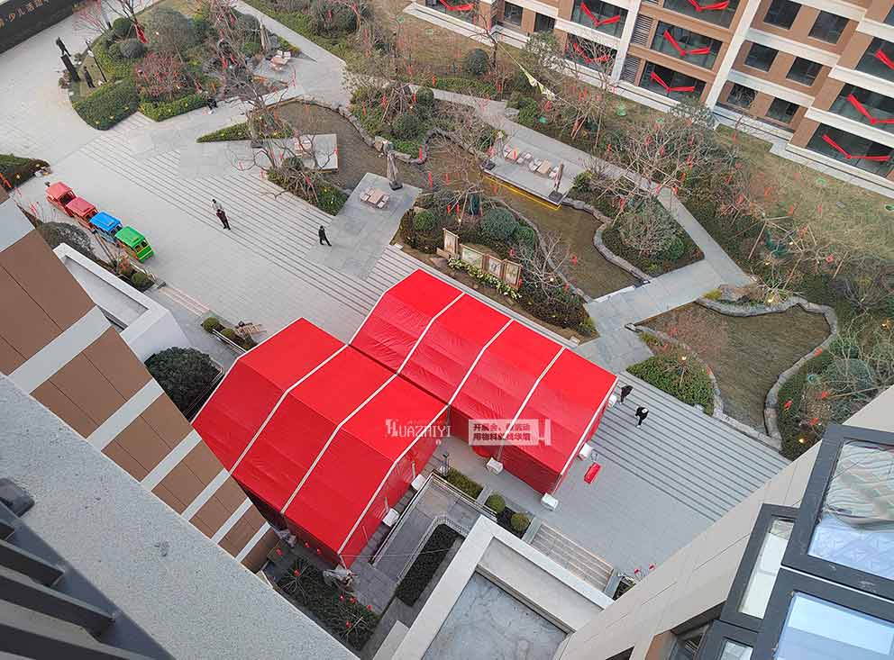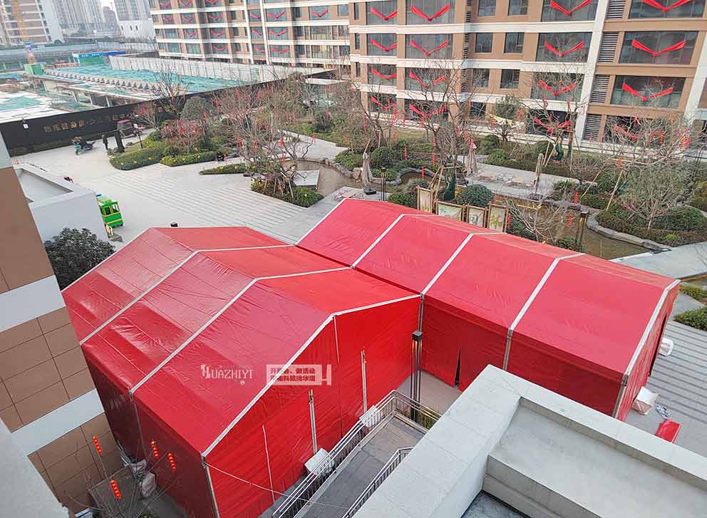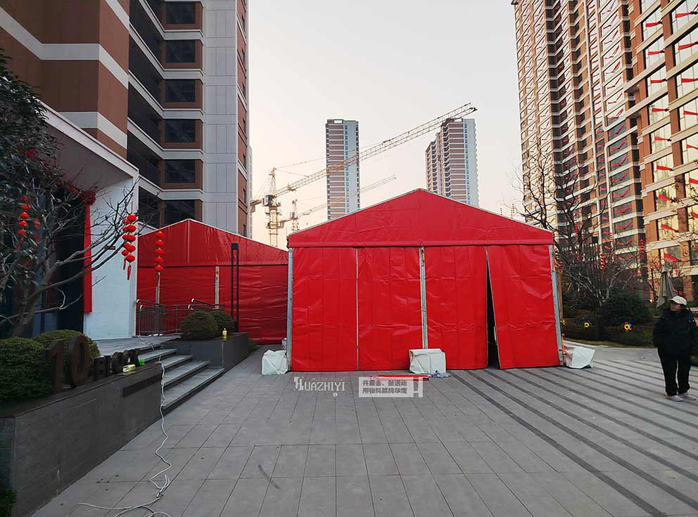 新乡篷房出租深入把握交房活动的核心需求,精选红色篷房作为核心搭建物料。红色象征吉祥、喜庆与团圆,与新村院交房的欢乐主题高度契合,鲜艳的红色篷房在新村院场地中格外醒目,瞬间拉满喜庆氛围,让每一位前来收房的村民都能感受到乔迁的喜悦。同时,红色篷房采用优质篷布材质,兼具防水、防晒、抗风等实用性能,能从容应对户外多变天气,为交房仪式的签到、流程办理、休息等环节提供稳定的空间保障。
