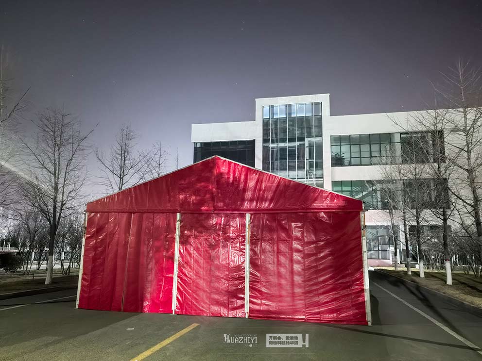 济源篷房租赁深入洞察年货节的民俗属性与消费心理,精选红色篷布打造核心展示空间。红色作为新春的经典象征,承载着吉祥喜庆的美好寓意,与年货节的热闹氛围完美契合,红色篷房成为年货节最亮眼的视觉标识,瞬间拉满年味。篷房采用经典人字形设计,线条流畅大气,搭配红色篷布的浓郁色泽,既彰显传统年味,又不失规整质感,让市民在采购过程中沉浸式感受新春的喜庆氛围。