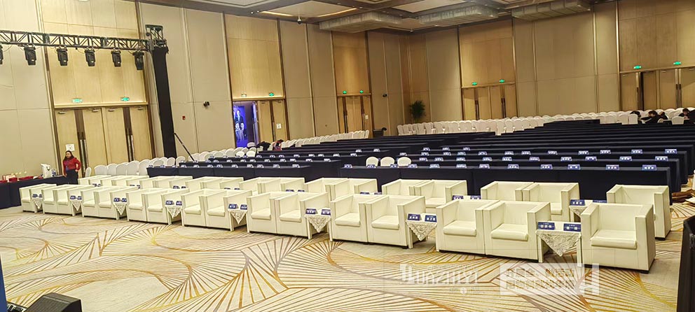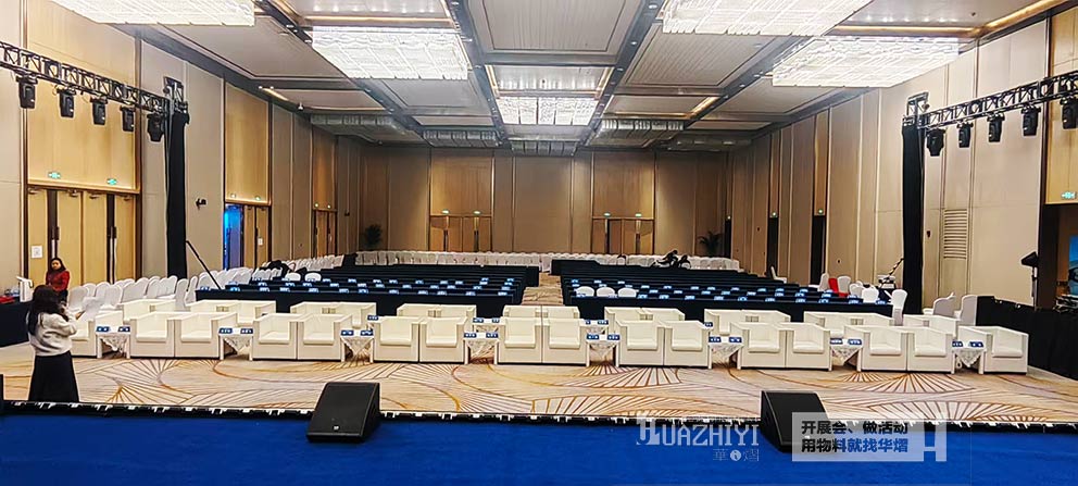 以质感赢信任,以专业助圆满。开封沙发出租用白色单人皮质沙发与茶几,为高新假日酒店活动打造了高端雅致的休憩空间,既彰显了酒店的高端定位,又提升了嘉宾的活动体验。